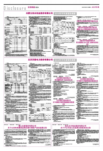 内蒙古西水创业股份有限公司2014年半年度报告摘要