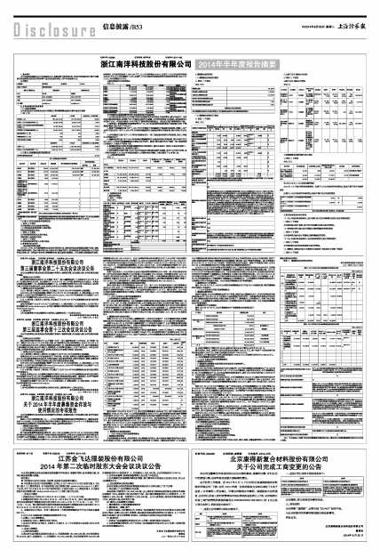 证券代码:002389 证券简称:南洋科技 公告编号:2014-081