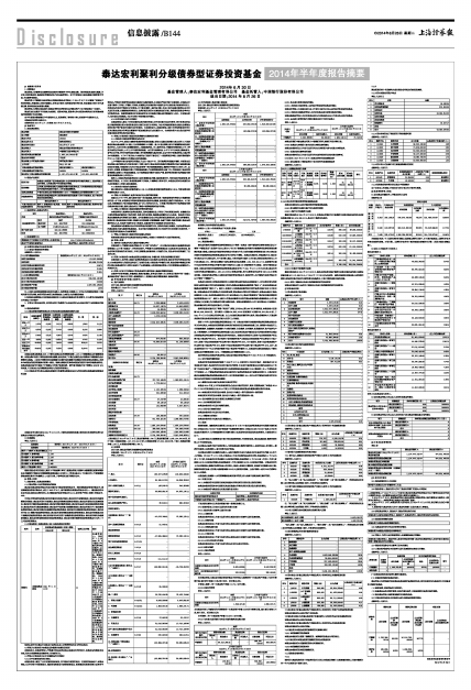 1、报告截止日2014年06月30日,基金份额净值1.245元,基金份额总额1,582,104,870.50份,其中下属A类基金份额1,107,473,410.47份,B类基金份额474,631,460.03份。下属A类基金份额净值1.142元,B类基金份额净值1.485元。