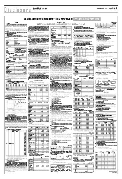 2014年上半年度,由泰达宏利基金管理有限公司编制并经托管人复核审查的有关泰达宏利价值优化型周期类行业证券投资基金的半年度报告中财务指标、净值表现、收益分配情况、财务会计报告相关内容、投资组合报告等内容真实、准确、完整。