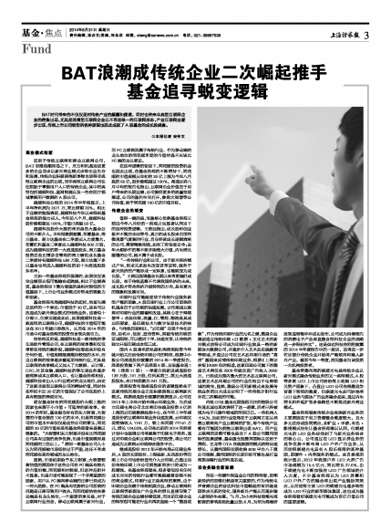 BAT浪潮成传统企业二次崛起推手 基金追寻蜕变逻辑