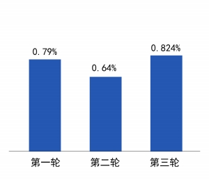 综合而言,第三轮新股的网上平均中签率为0.824%,网下为0.4%,与第一轮、第二轮的0.79%、0.24%和0.64%、0.42%相比,中签率有整体走高的态势。