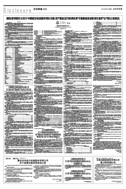 公司本次重大资产重组独立财务顾问瑞银证券有限责任公司认为:
