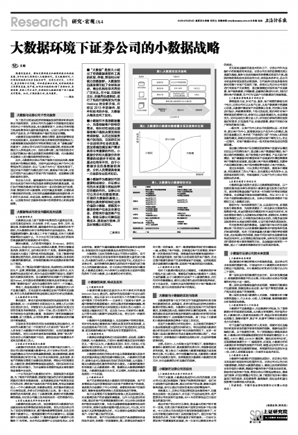 大数据的上述应用使得企业从不同的方面获利,但不少证券公司发现这些设备和软件需要耗费大量的财力物力,在大数据方面的人才储备方面也明显不足。尤其是中小证券公司,面对昂贵的机器和先进的技术手段因为财力物力人力的差距望而却步。对于证券公司的很多实际问题来说,小数据是足够的,中小券商可以在暂时各方面条件受限的条件下分析小数据,从小数据的分析中获利。