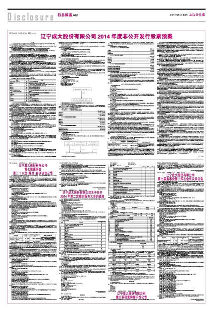 辽宁成大股份有限公司2014年度非公开发行股票预案