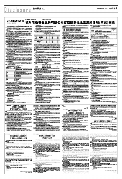 2、本计划所采用的激励工具为限制性股票,股票来源为杭州老板电器股份有限公司(以下简称“老板电器”或“本公司”、“公司”)向激励对象定向发行新股。