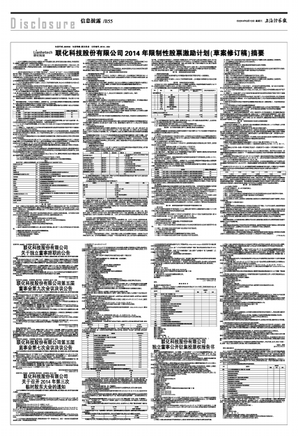 联化科技股份有限公司2014年限制性股票激励计划(草案修订稿)摘要