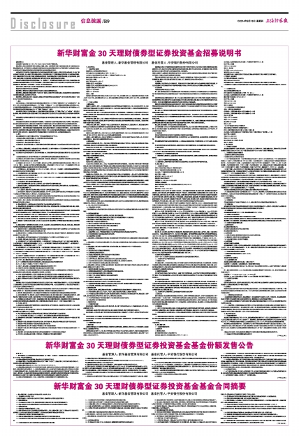 本招募说明书阐述了新华财富金30天理财债券型证券投资基金(以下简称“基金”或“本基金”)的投资目标、策略、风险、费率等与投资者投资决策有关的全部必要事项,投资者在作出投资决策前应仔细阅读本招募说明书。