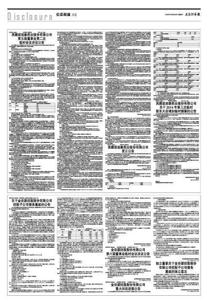 证券代码:600211 股票简称:西藏药业 编号:2014-063