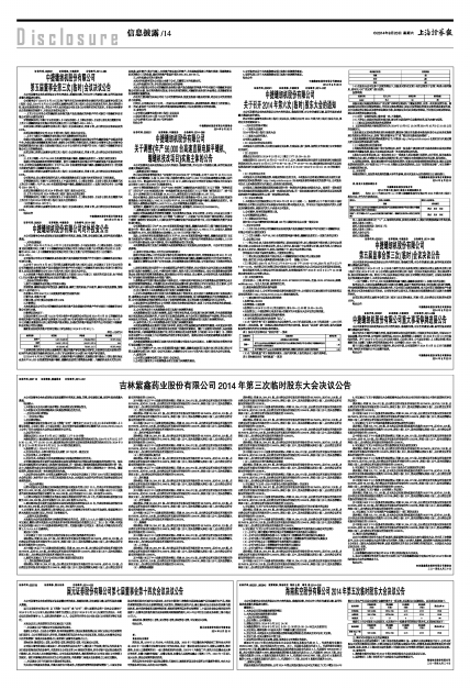 1、吉林紫鑫药业股份有限公司2014年第三次临时股东大会决议;