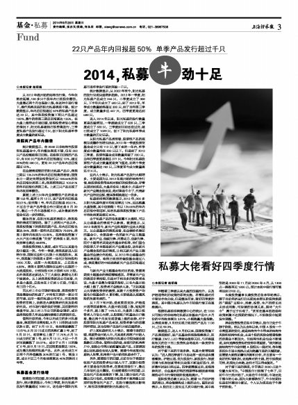 伴随着三季度以来大盘的迅猛拉升,以及沪港通等利好政策的即将实施,尽管私募对后市看法存在分歧,但是整体而言,看好四季度的表现。其中部分私募认为牛市初级行情正在逐渐展开。