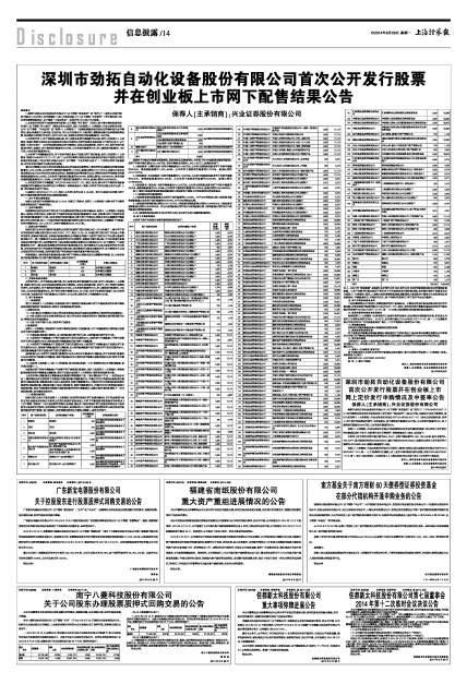 并在创业板上市网下配售结果公告