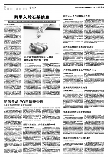 35亿拿下桑德国际31%股权 桑德环境整合旗下业务
