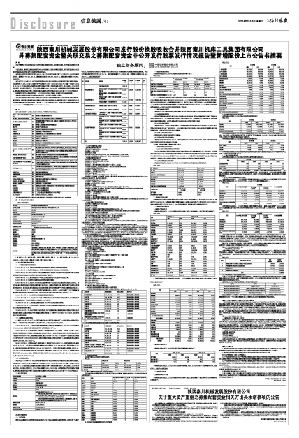 陕西秦川机械发展股份有限公司(以下简称“发行人”、“公司”)发行股份换股吸收合并陕西秦川机床工具集团有限公司并募集配套资金之募集配套资金非公开发行股票(以下简称“本次发行”)工作已经完成,现将本次发行相关承诺公告如下:
