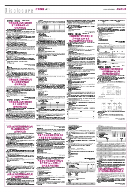 证券代码:601989 证券简称:中国重工 公告编号:临2014-056