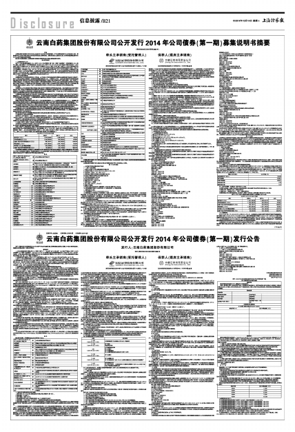 云南白药集团股份有限公司公开发行2014年公司债券(第一期)募集说明书摘要
