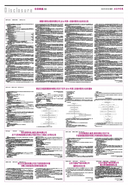 黑龙江交通发展股份有限公司关于召开2014年第三次临时股东大会的通知