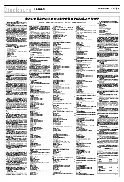 泰达宏利养老收益混合型证券投资基金更新招募说明书摘要