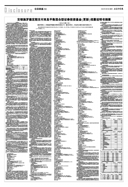交银施罗德定期支付双息平衡混合型证券投资基金(更新)招募说明书摘要