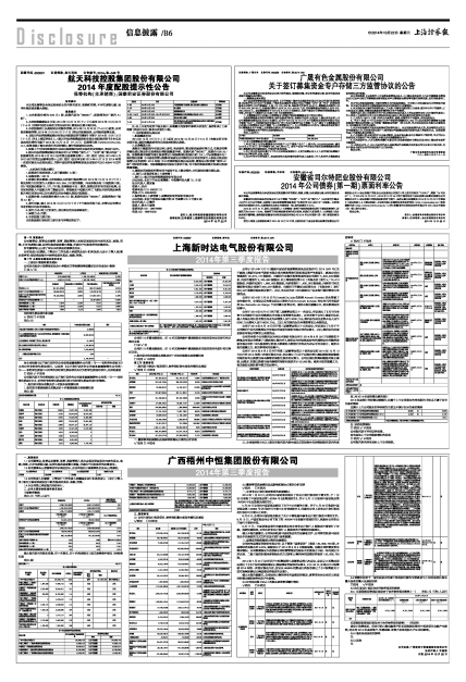 | 2014年08月16日 | 公告编号:临2014-062;公告名称:上海新时达电气股份有限公司关于全资子公司完成工商变更登记的公告;公告网站名称:巨潮资讯网;公告网站网址:www.cninfo.com.cn | |