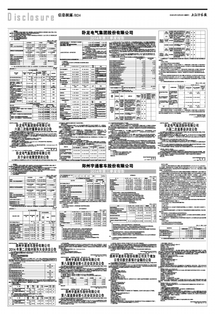 二〇一四年十月二十二日证券代码:600580 证券简称:卧龙电气 公告编号:临2014-046