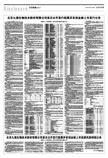 北京九强生物技术股份有限公司首次公开发行股票并在创业板上市发行公告