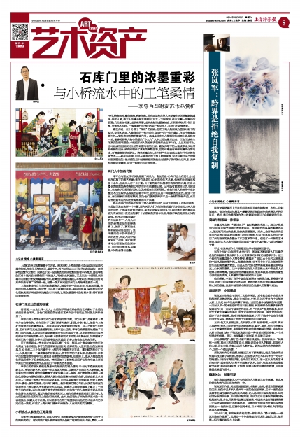 李守白与谢友苏可以说是属于两代人。谢友苏是40年代出生在旧社会,成长在红旗下的老艺术家;李守白则是位60后的中年艺术家,他俩的生活阅历相差十余年,但是两人对于生于斯、长于斯的城市风情都怀有浓厚的兴趣,用自己擅长的绘画风格将各自心中的市井生活描绘出来,从中既有画家自己的儿时回忆,也包含了父辈们的记忆,以及对现实生活的写照。在他们两人的画作中也许都分不出这些作品表现的是哪个年代,因为这只是一种抽象的过去式。在这一方面,两位画家似乎很有默契,因为他们想表现得并不是一座城市的编年史,而只是曾经拥有过的和还在延续着的市井风情。