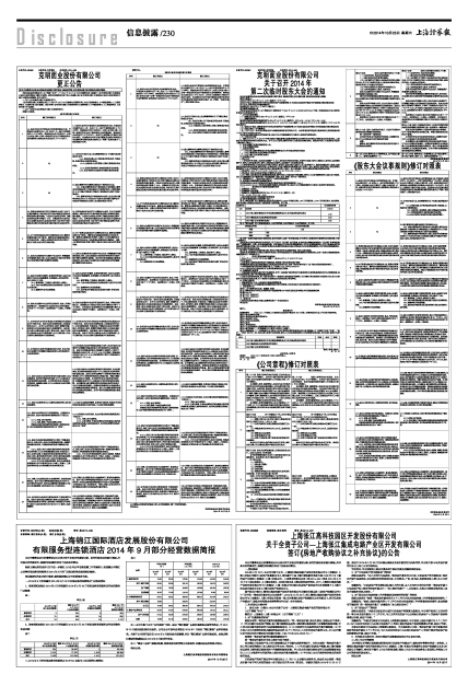 根据上海证券交易所《关于进一步做好上市公司公平信息披露工作的通知》,现披露公司锦江之星等有限服务型连锁酒店2014年9月份门店发展和客房运营部分数据。