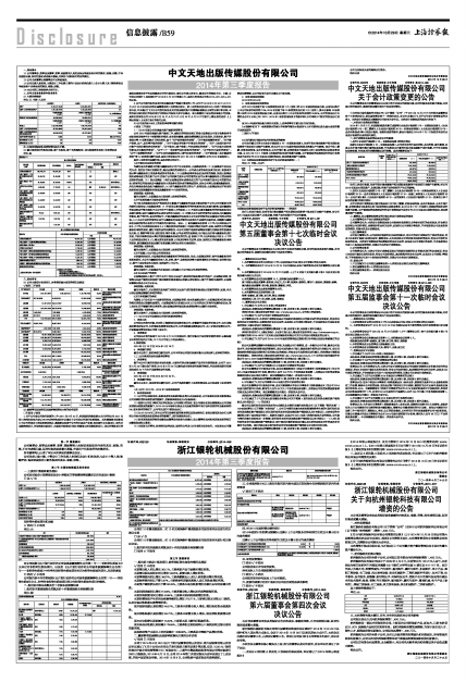 详细内容见同日《上海证券报》、《证券日报》及上海证券交易所网站http://www.sse.com.cn,公司编号为临2014-062《中文天地出版传媒股份有限公司关于公司会计政策变更的公告》。