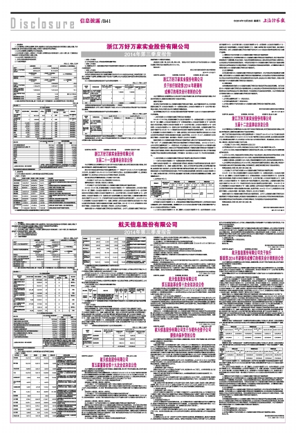 证券代码:600271 证券简称:航天信息 编号:2014-038