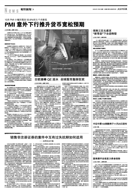 与预期中回升的势头相反,10月PMI数据回落至五个月低点的50.8%,显示经济增长仍有一定下行压力。并且值得注意的是,据中国物流与采购联合会数据,有近半数被调查企业反映资金紧张,已经对企业采购、经营产生影响。为此,经济学家建议,可以降息降准来降低融资成本。