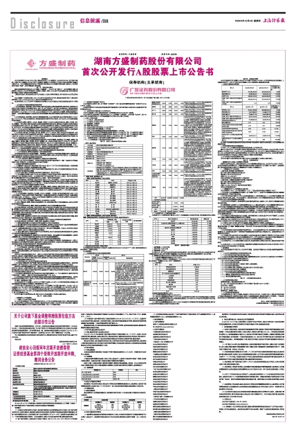 湖南方盛制药股份有限公司(以下简称“方盛制药”、“本公司”或“发行人”)及全体董事、监事、高级管理人员保证上市公告书的真实性、准确性、完整性,承诺上市公告书不存在虚假记载、误导性陈述或重大遗漏,并承担个别和连带的法律责任。