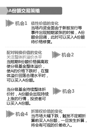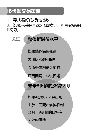 (2)B份额主要是短期波段操作策略,而当B份额的估值产生较大的偏差时,还可以进行整体折溢价套利策略,包括整体溢价套利、整体折价套利。