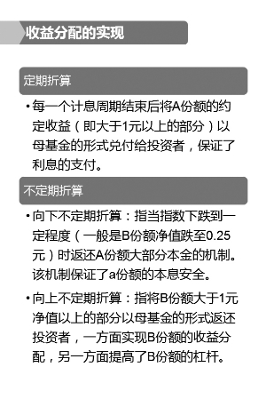 当母基金净值上涨到一定阀值时(一般为1.5元或2元),为了使B份额兑现收益,将B份额大于1元净值以上的部分以母基金的形式返还投资者实现B份额的收益分配。