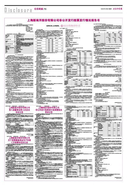 8、2014年11月7日,海通证券股份有限公司(以下简称“海通证券”)将收到的认购资金总额扣除相关发行费用1,200,000.00元后的资金192,732,104.22元划转至新南洋指定的银行账号内。
