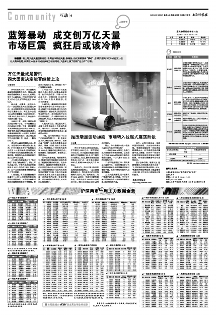蓝筹暴动 成交创万亿天量 市场巨震 疯狂后或该冷静