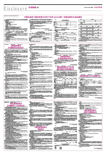中国冶金科工股份有限公司关于召开2015年第一次临时股东大会的通知