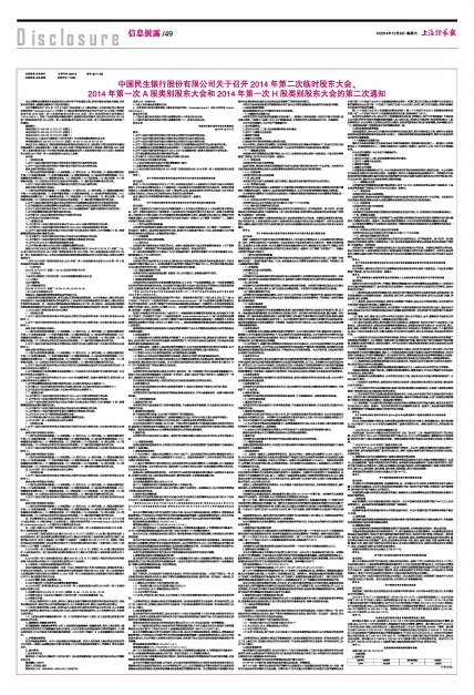 中国民生银行股份有限公司关于召开2014年第二次临时股东大会、