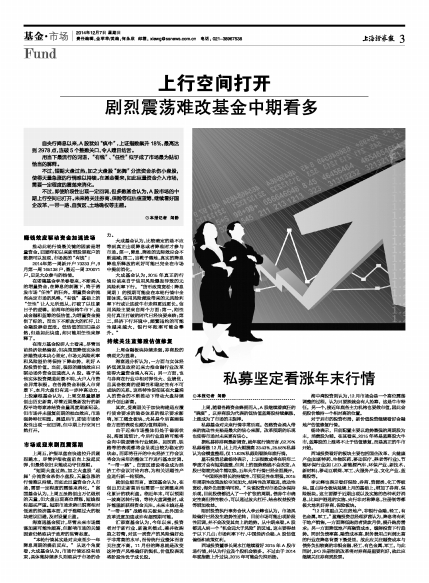 私募基金对未来行情非常乐观。各路资金涌入带来的流动性充裕是最大的信心来源,改革预期的乐观也使得市场对未来更有信心。