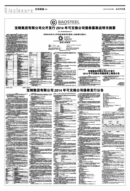 宝钢集团有限公司2014年可交换公司债券发行公告