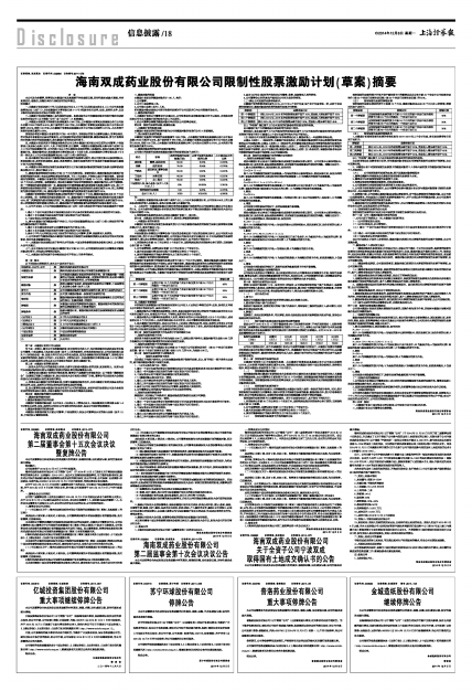 海南双成药业股份有限公司限制性股票激励计划(草案)摘要