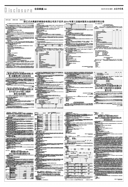 浙江尤夫高新纤维股份有限公司关于召开2014年第三次临时股东大会的提示性公告