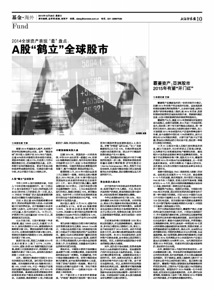霸菱资产在最新发布的一份研究报告中表示,回顾2014年各资产的当地货币回报,会发现股票和债券是最优秀的投资资产。从全球市场看,这两大类资产的价格多数是上涨的,就2015年而言,股票和债券的投资和区域政治风险升温、美联储何提前加息、以及中国和欧洲的经济表现等明显相关。