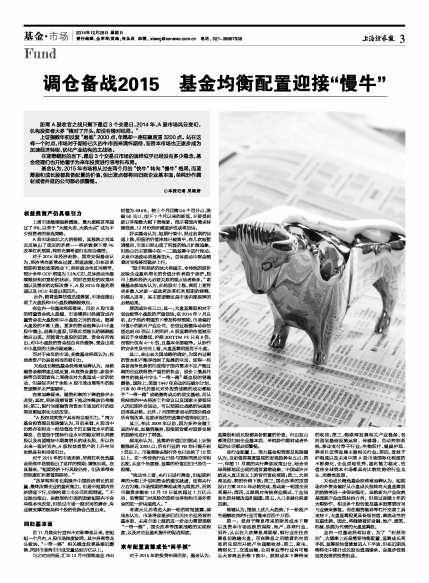 调仓备战2015 基金均衡配置迎接“慢牛”