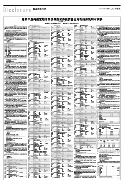 嘉实丰益纯债定期开放债券型证券投资基金更新招募说明书摘要