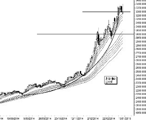 当市场在2014年12月9日回落以及在12月24日再次回落时,GMMA长期组均线没有出现收敛。投资者将回落看成是买入的机会。这些行为确认了长期上升趋势的力量与稳定性。( 编译:陈静)
