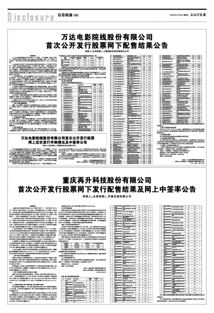 4、本次网下投资者有效申购总量高于网下最终发行数量。发行人和保荐人(主承销商)根据《万达电影院线股份有限公司首次公开发行股票初步询价及推介公告》(以下简称“《初步询价及推介公告》”)和《万达电影院线股份有限公司首次公开发行股票发行公告》(以下简称“《发行公告》”)中列示的网下配售原则进行配售。