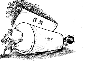 高速发展且不断业务创新的保险业正成为洗钱的秘密通道。比如,企业公款通过保险“洗”为“小金库”、养老保险“趸缴即领”、“黑钱”置换保险标的后获得赔偿等等。保监会近日发布《保险机构洗钱和恐怖融资风险评估及客户分类管理指引》,构筑起自查洗钱的第一道防线。 漫画 刘道伟