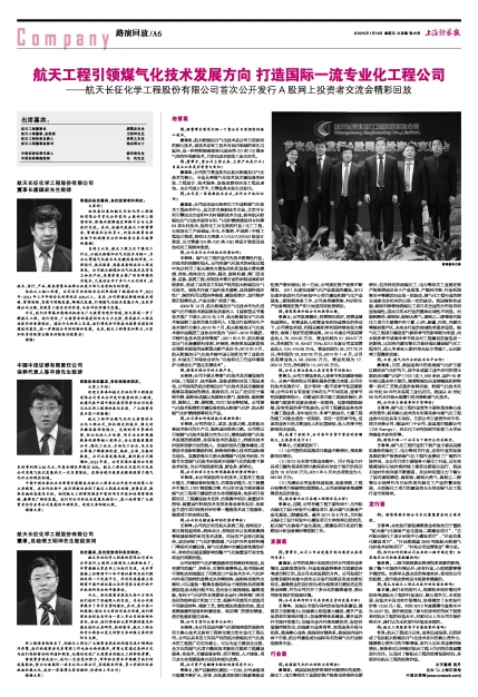 ——航天长征化学工程股份有限公司首次公开发行A股网上投资者交流会精彩回放