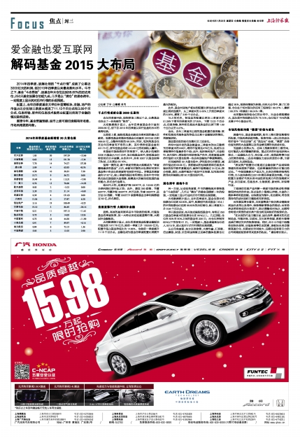 单只基金层面,在开放式偏股型基金中,有将近250只基金四季度末的股票仓位在90%以上,几近顶配;仓位在80%至90%之间的基金有208只;而仓位控制在60%以下的仅有61只。一定程度上,基金普遍高仓位进入2015年,暗示其对于后市行情的乐观预期。